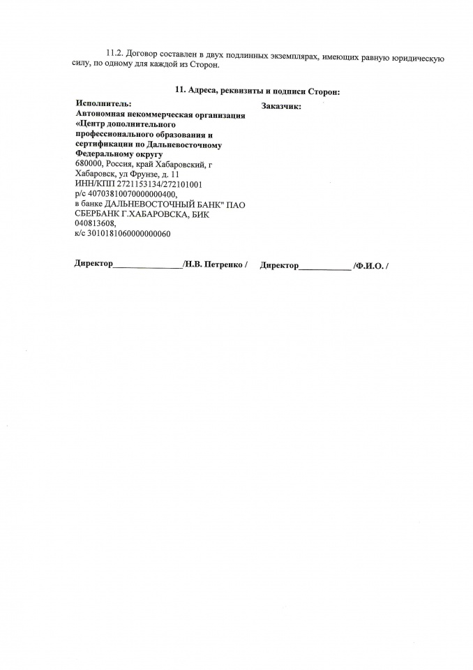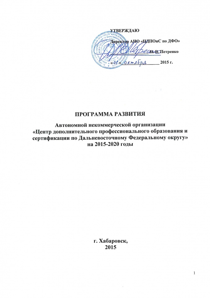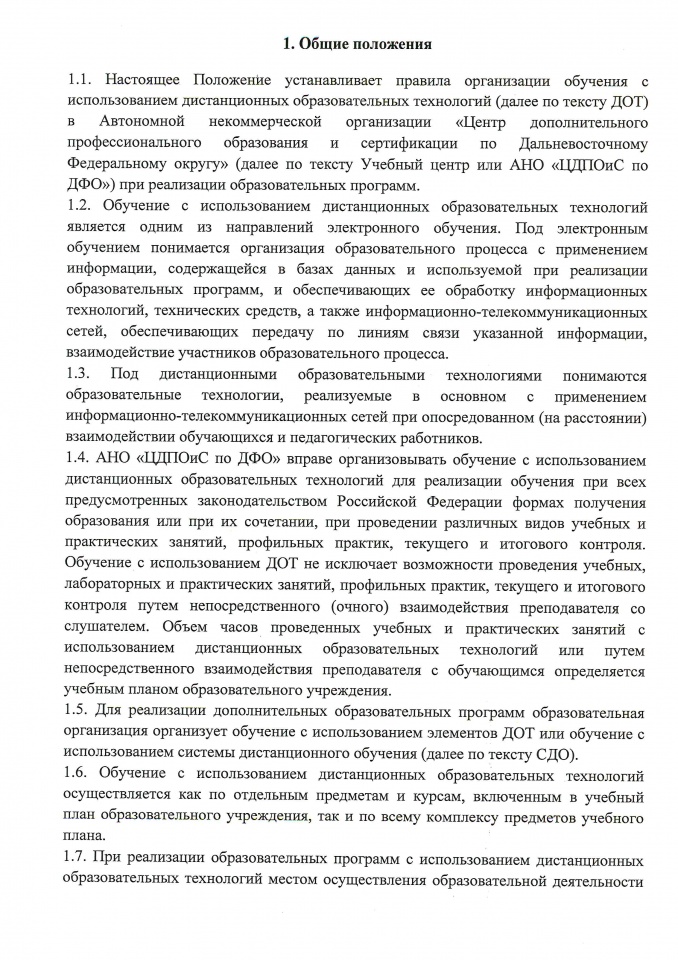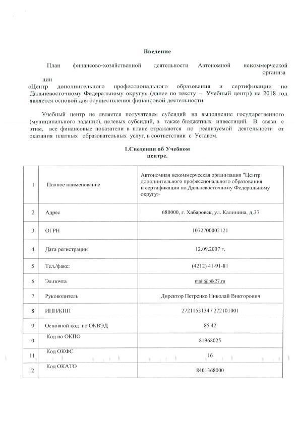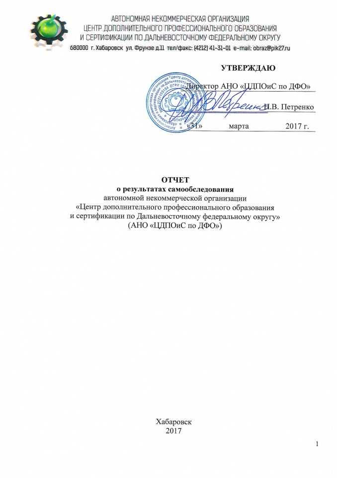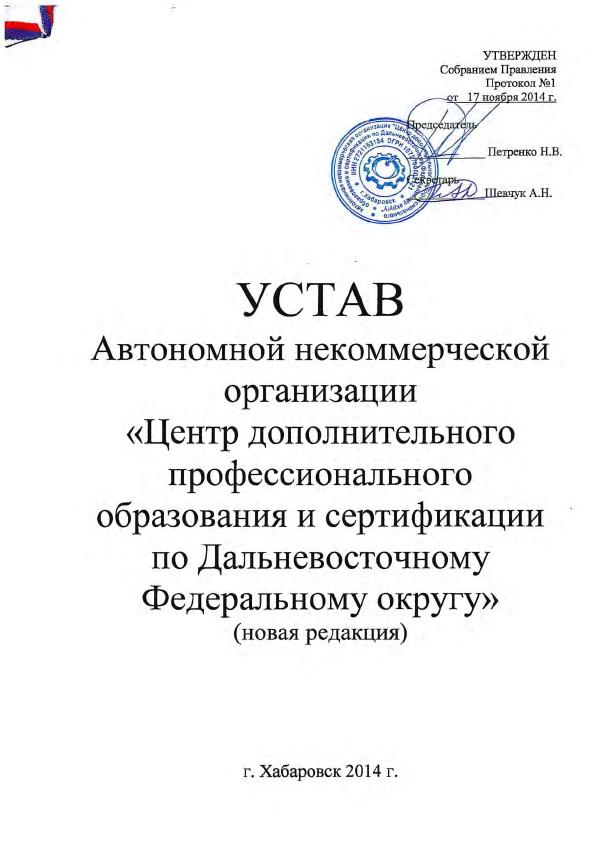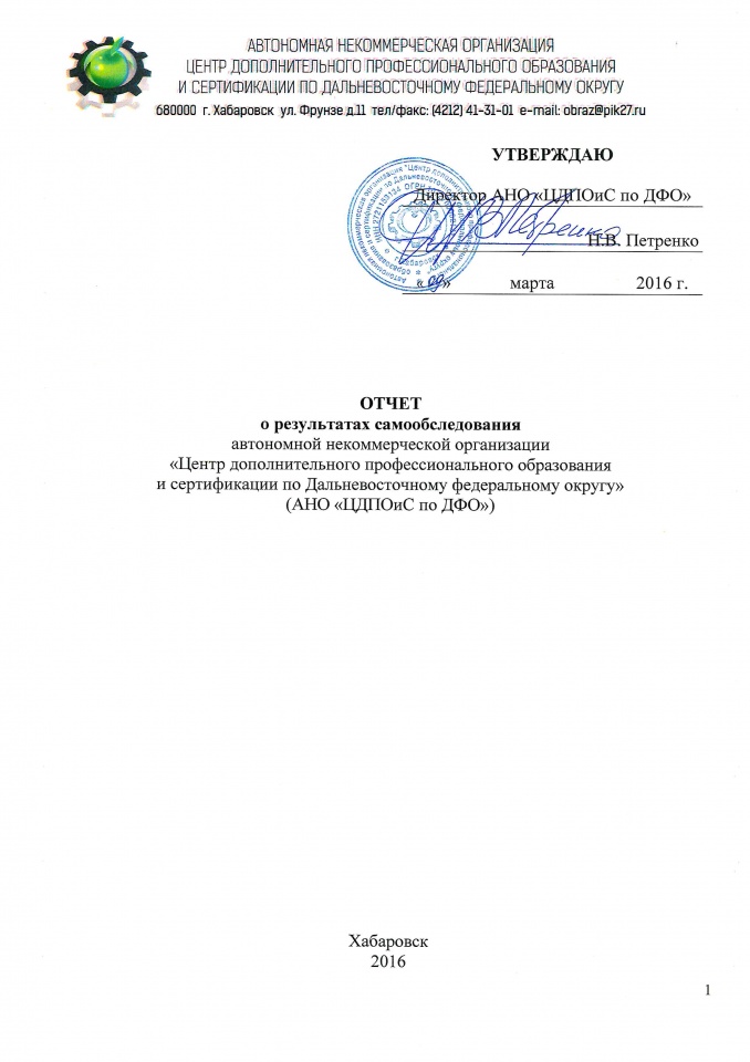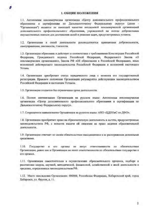 1 Полное наименование организации: АВТОНОМНАЯ НЕКОММЕРЧЕСКАЯ ОРГАНИЗАЦИЯ ``ЦЕНТР ДОПОЛНИТЕЛЬНОГО ПРОФЕССИОНАЛЬНОГО ОБРАЗОВАНИЯ И СЕРТИФИКАЦИИ ПО ДАЛЬНЕВОСТОЧНОМУ ФЕДЕРАЛЬНОМУ ОКРУГУ ``