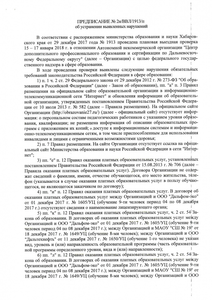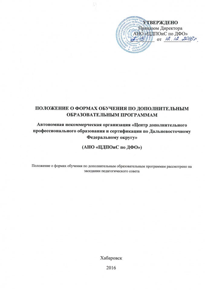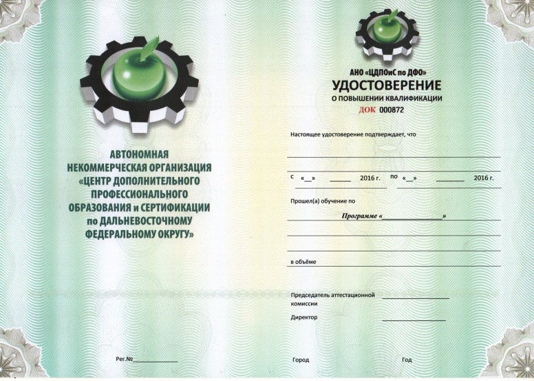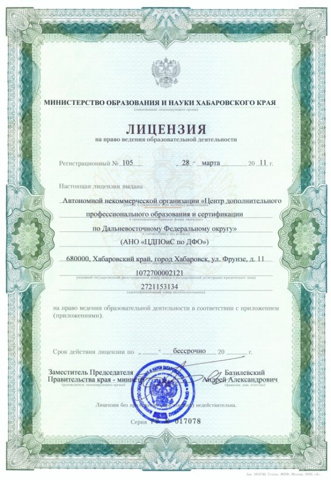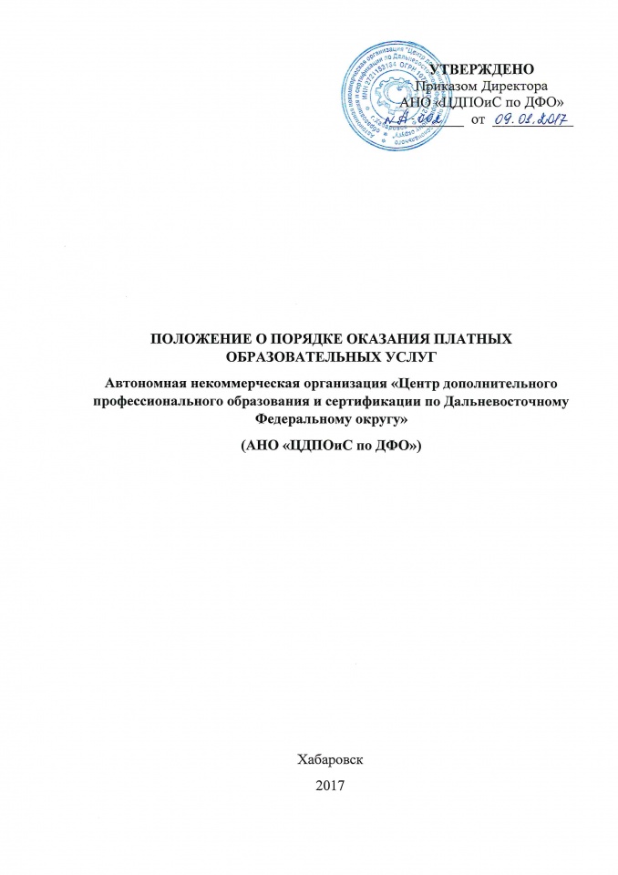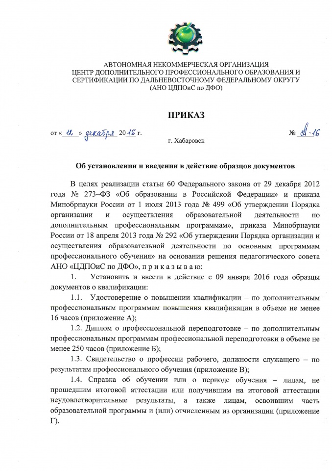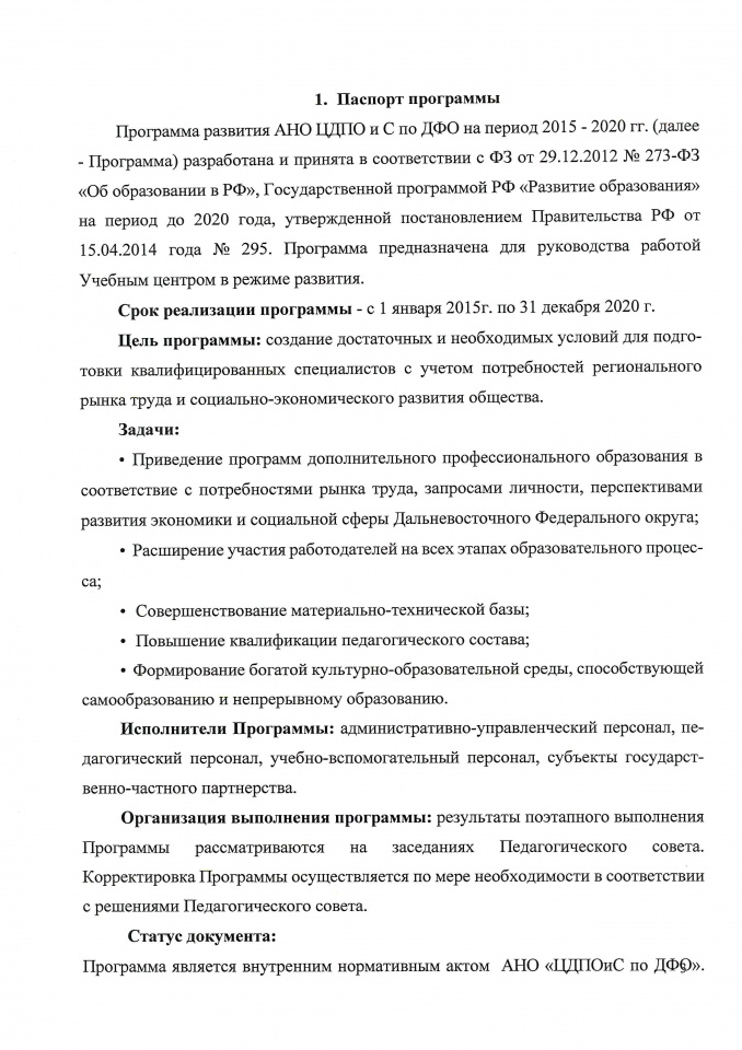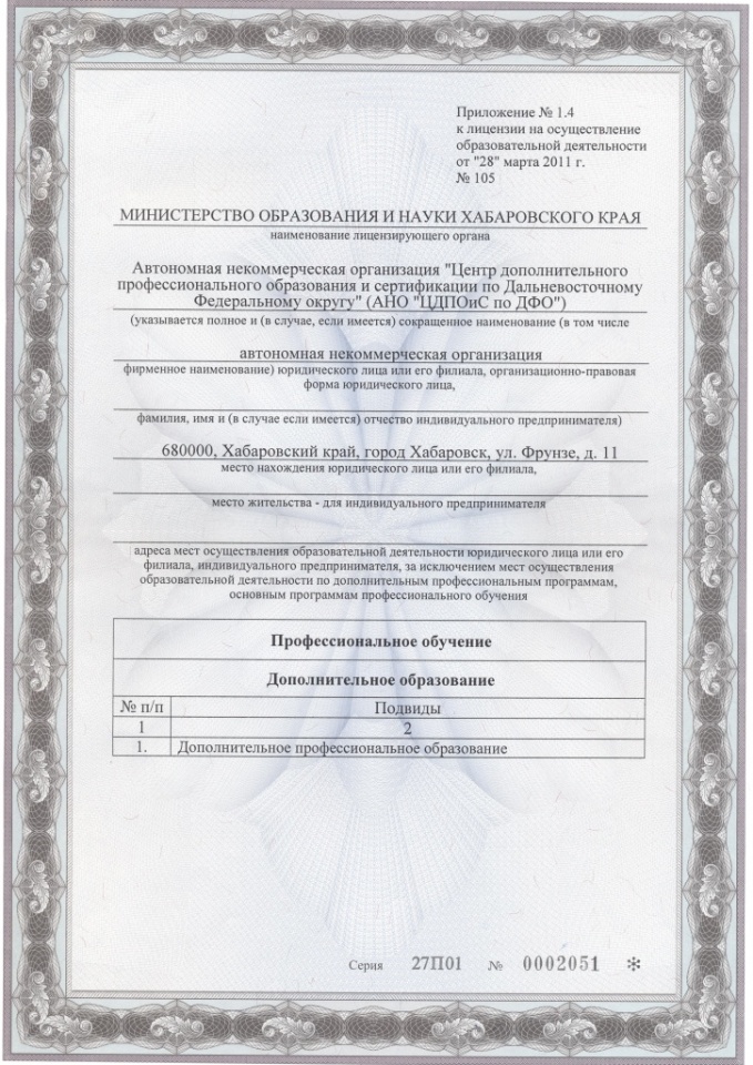 1 Полное наименование организации: АВТОНОМНАЯ НЕКОММЕРЧЕСКАЯ ОРГАНИЗАЦИЯ ``ЦЕНТР ДОПОЛНИТЕЛЬНОГО ПРОФЕССИОНАЛЬНОГО ОБРАЗОВАНИЯ И СЕРТИФИКАЦИИ ПО ДАЛЬНЕВОСТОЧНОМУ ФЕДЕРАЛЬНОМУ ОКРУГУ ``