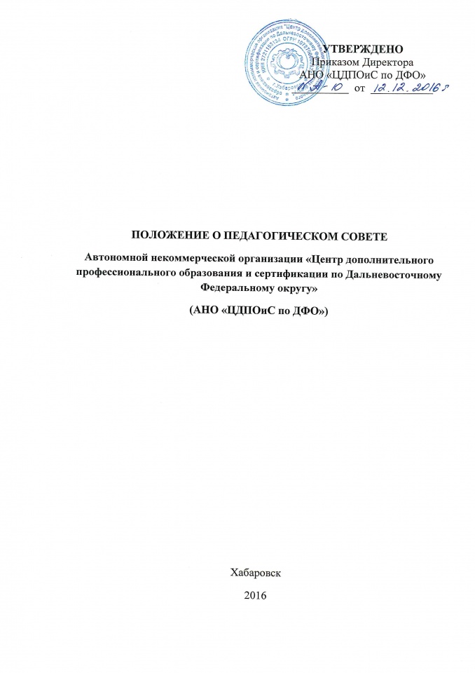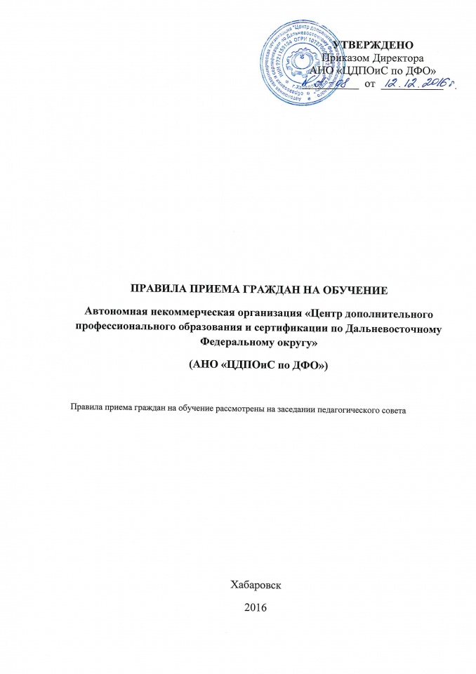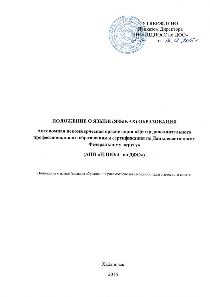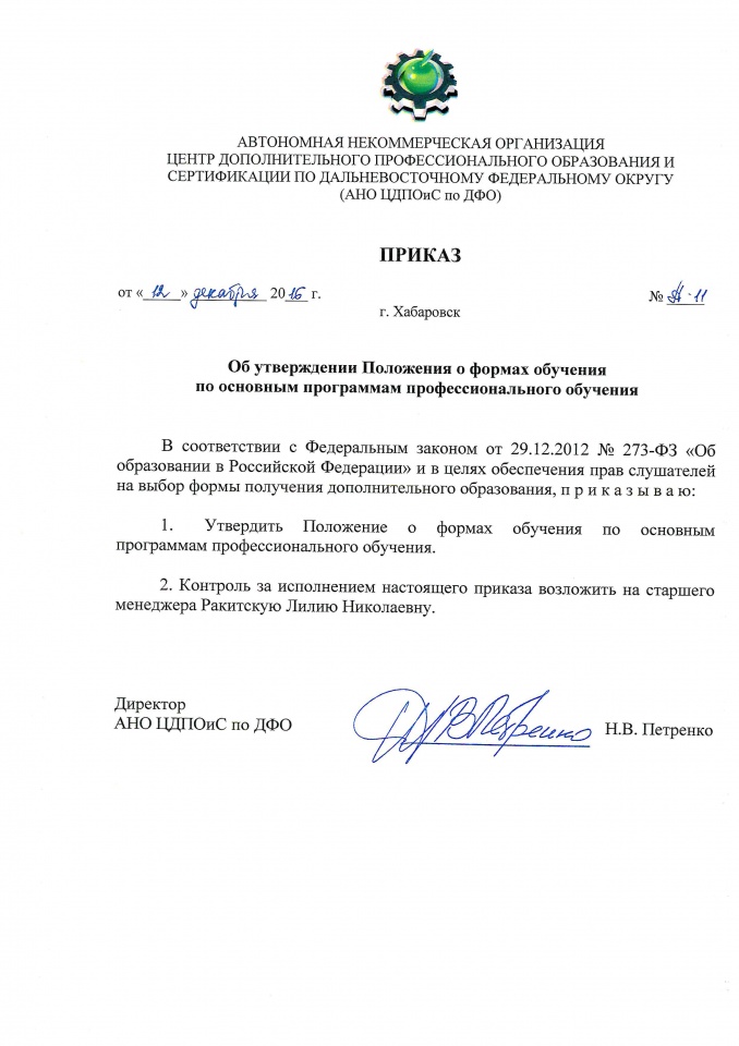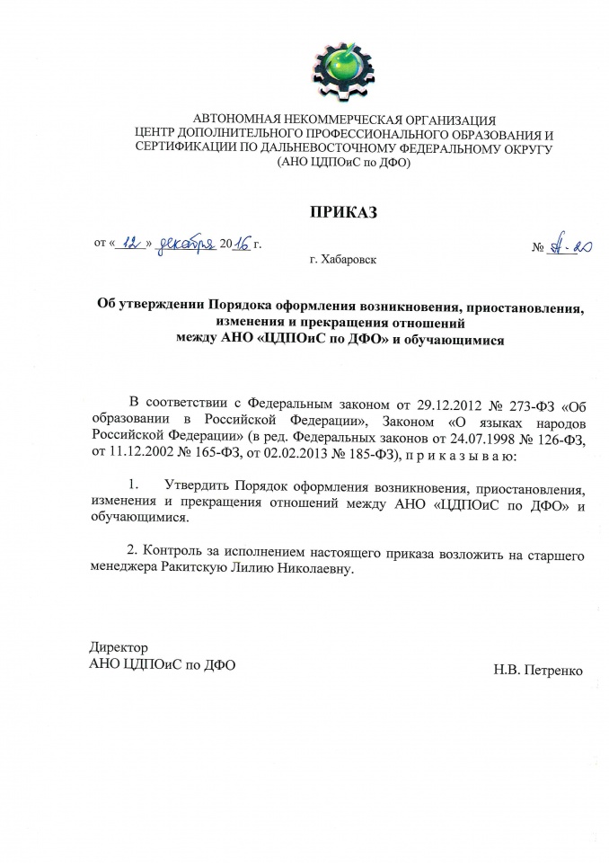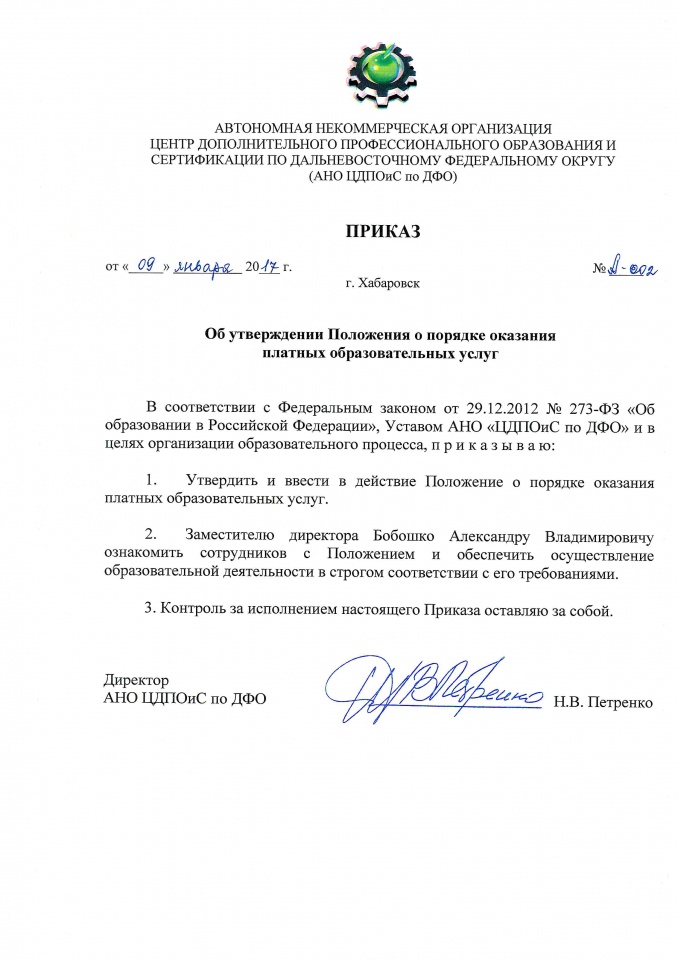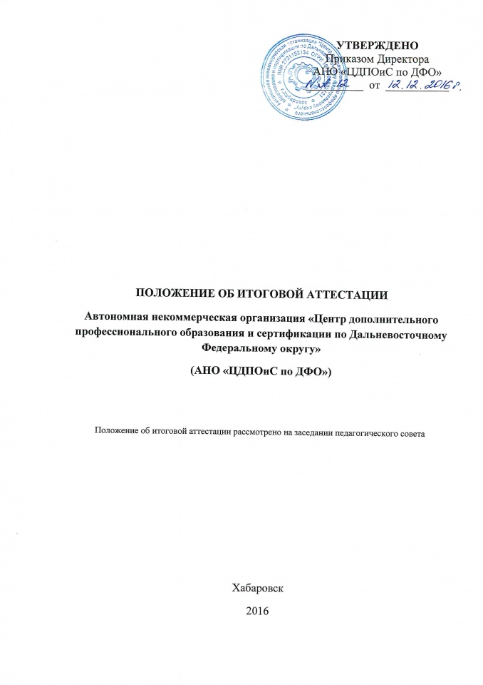 1 Полное наименование организации: АВТОНОМНАЯ НЕКОММЕРЧЕСКАЯ ОРГАНИЗАЦИЯ ``ЦЕНТР ДОПОЛНИТЕЛЬНОГО ПРОФЕССИОНАЛЬНОГО ОБРАЗОВАНИЯ И СЕРТИФИКАЦИИ ПО ДАЛЬНЕВОСТОЧНОМУ ФЕДЕРАЛЬНОМУ ОКРУГУ ``