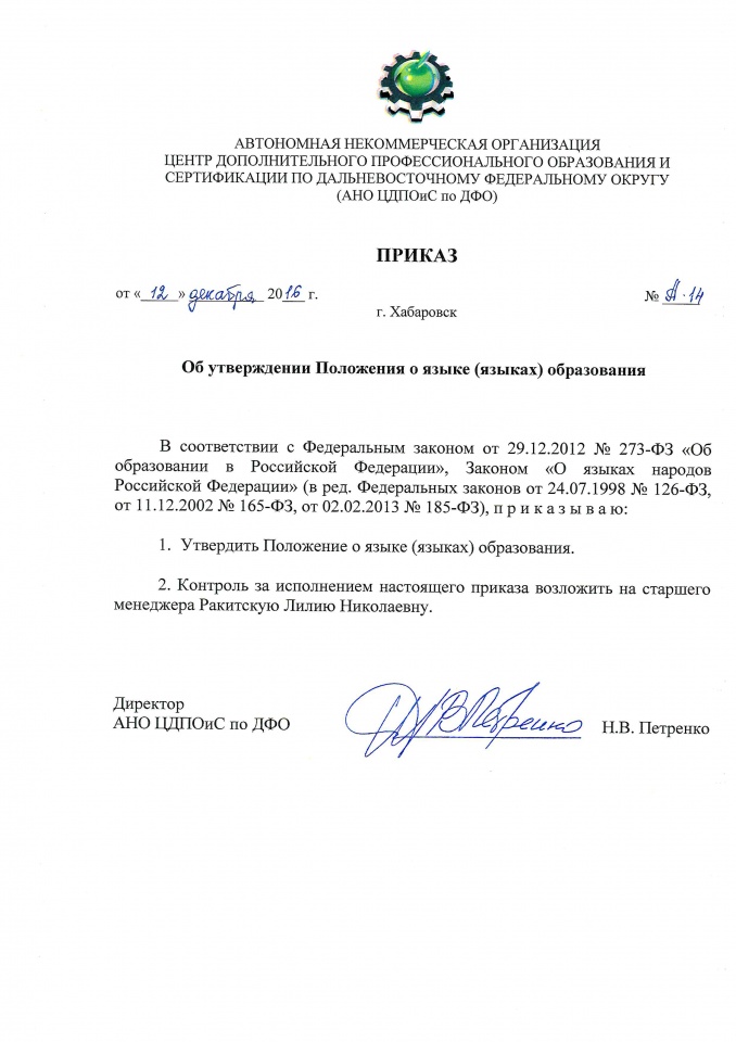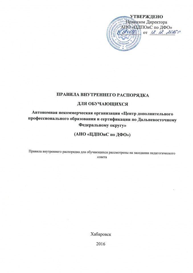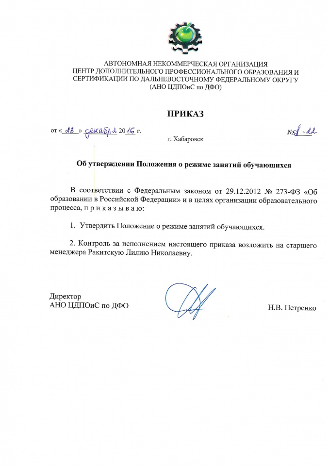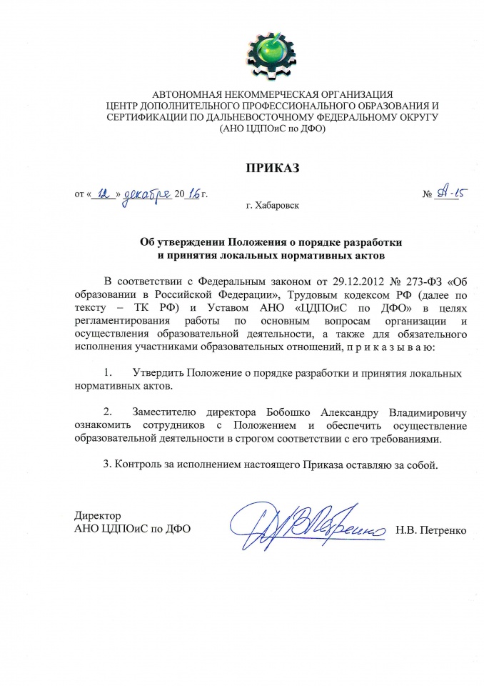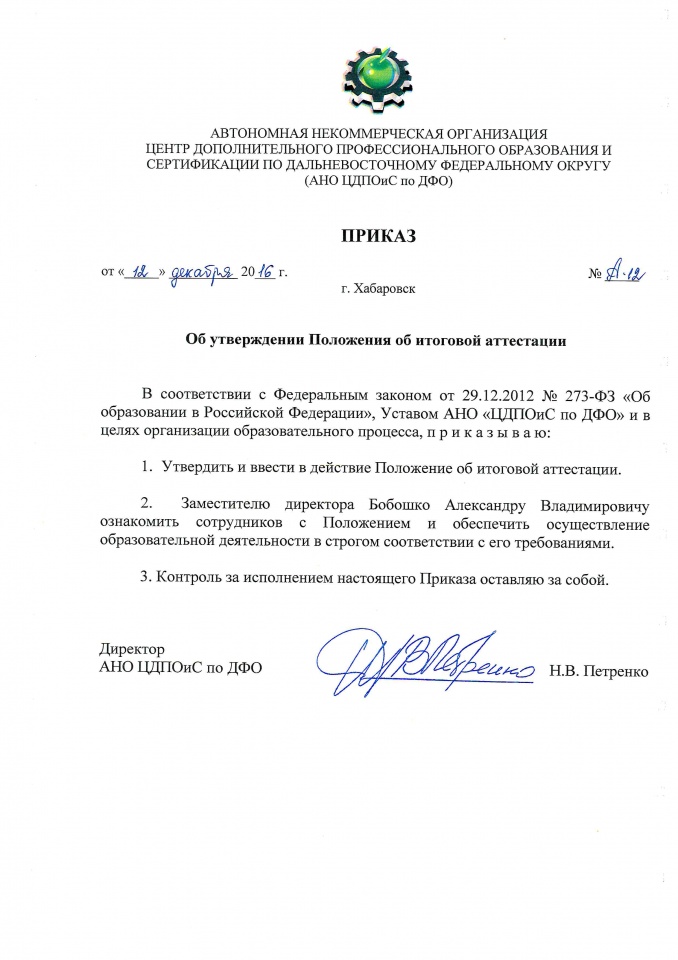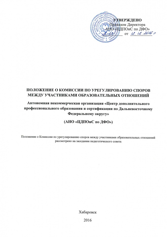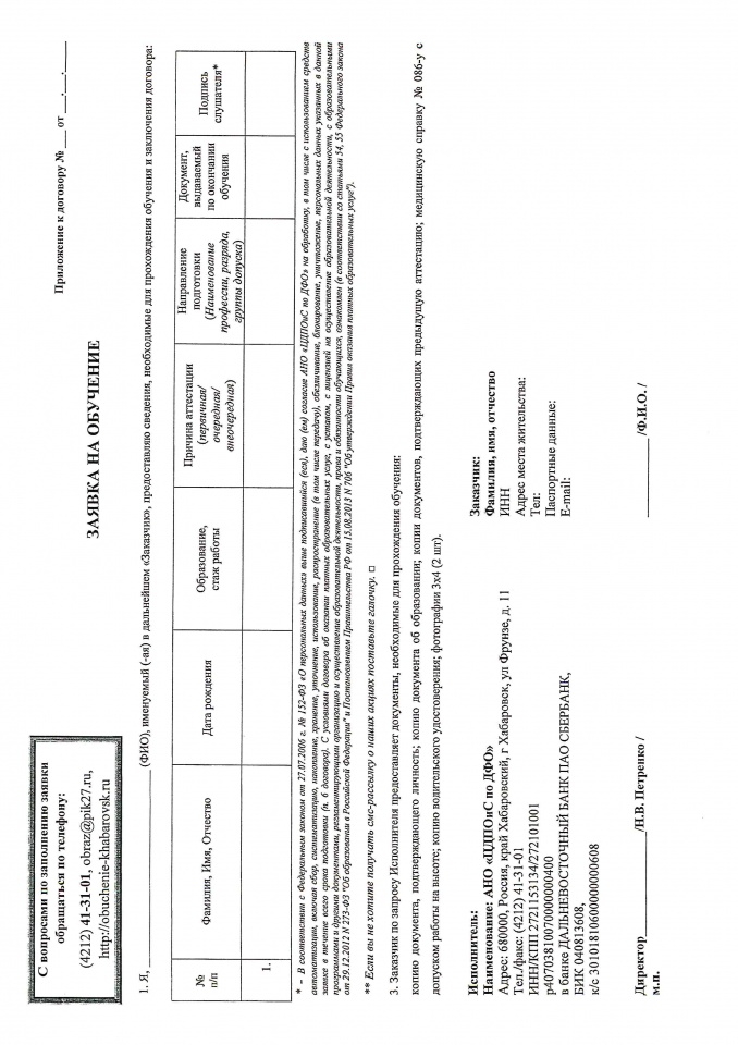 1 Полное наименование организации: АВТОНОМНАЯ НЕКОММЕРЧЕСКАЯ ОРГАНИЗАЦИЯ ``ЦЕНТР ДОПОЛНИТЕЛЬНОГО ПРОФЕССИОНАЛЬНОГО ОБРАЗОВАНИЯ И СЕРТИФИКАЦИИ ПО ДАЛЬНЕВОСТОЧНОМУ ФЕДЕРАЛЬНОМУ ОКРУГУ ``