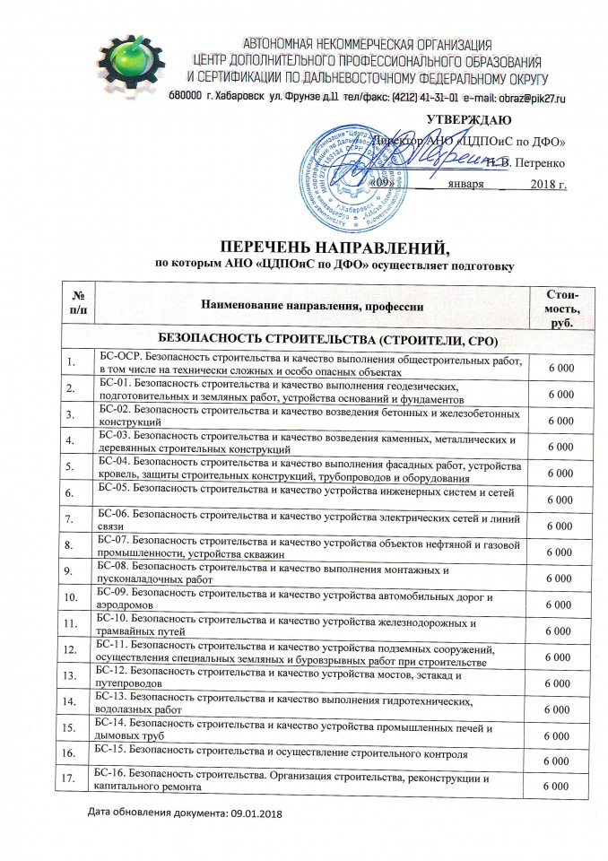 Программы профессиональной переподготовки и повышения квалификации составлены с учетом требований Профессиональных стандартов, ЕКС (Единый квалификационный справочник должностей руководителей, специалистов и других служащих, утв. Постановлением Минтруда России от 21 августа 1998 г. № 37), Федеральных законов, Постановлений Правительства РФ, иных подзаконных нормативных актов и отраслевых регламентирующих документов.