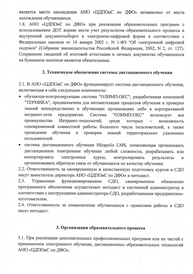 Обучение в дистанционной форме и форме электронного обучение проводится с применением лицензированных систем "ОЛИМП-ОКС" и Mirapolis. Для консультаций с преподавателями и приемки аттестационного экзамена используются современные каналы коммуникаций: Skype, Viber, Whatsapp, Telegramm.