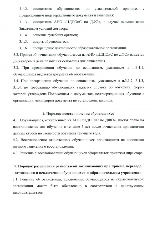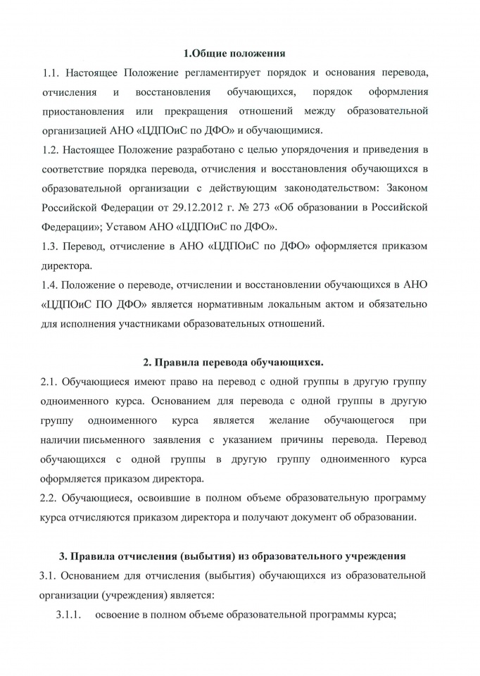 Порядок и основания перевода, отчисления и восстановления обучающихся