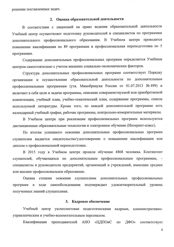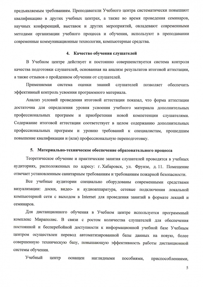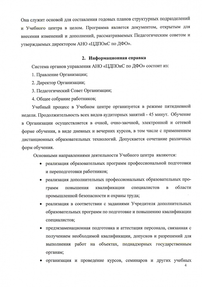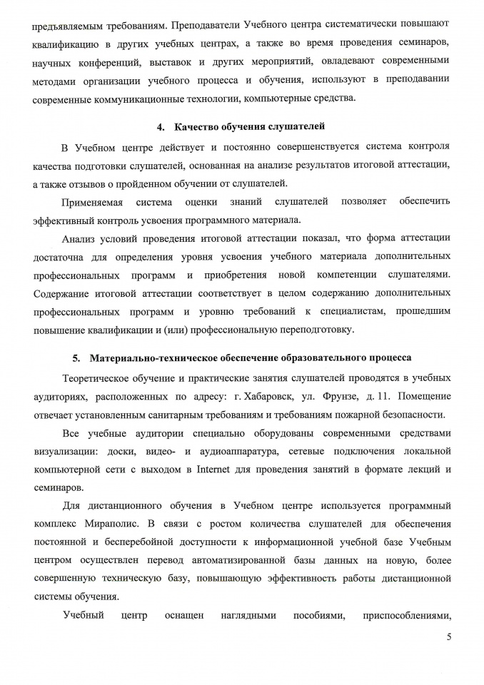 В соответствии с Лицензией на осуществление образовательной деятельности, Учебный центр реализует программы профессиональной переподготовки, со сроком освоения от 250 часов и программы повышения квалификации сроком освоения от 16 часов. Обучение проводится на русском языке, в очной или дистанционной форме.