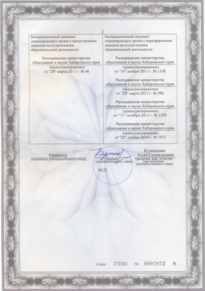 16. Лицензирование деятельности Лицензия на право ведения образовательной деятельности рег. № 105 от 28.03.2011г. Министерство образования и науки Хабаровского края Серия РО №017078
