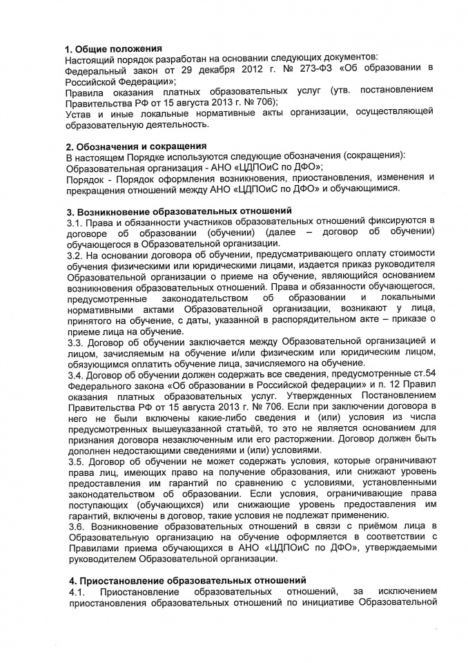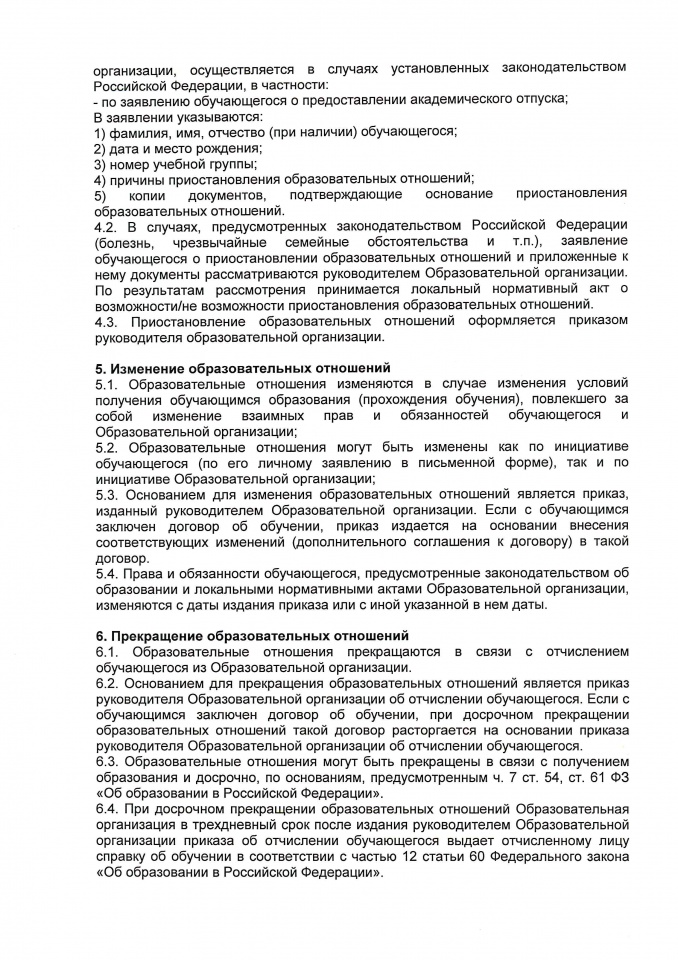 Порядок оформления возникновения, приостановления и прекращения отношений между образовательной организацией и обучающимися