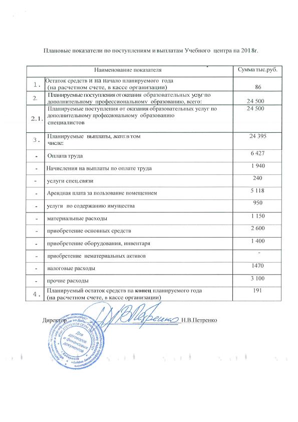 17. Перечень должностных лиц, уполномоченных подписывать документы: Директор Петренко Н.В.